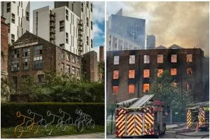 ‘They should be safe from part demolition and what is intended to be a huge, 16-storey, cantilevered tower, stuck directly above them, blacking out the daylight and virtually burying the original buildings.’